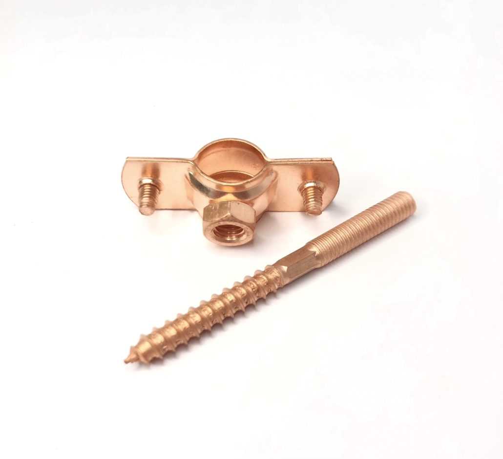 медных труб к различным поверхностям, обеспечивают надежное крепление и эстетический вид всей конструкции. Характеристики: Материал хомута: углеродистая сталь с медным покрытием. Температура эксплуатации: – 40… + 150 °С.