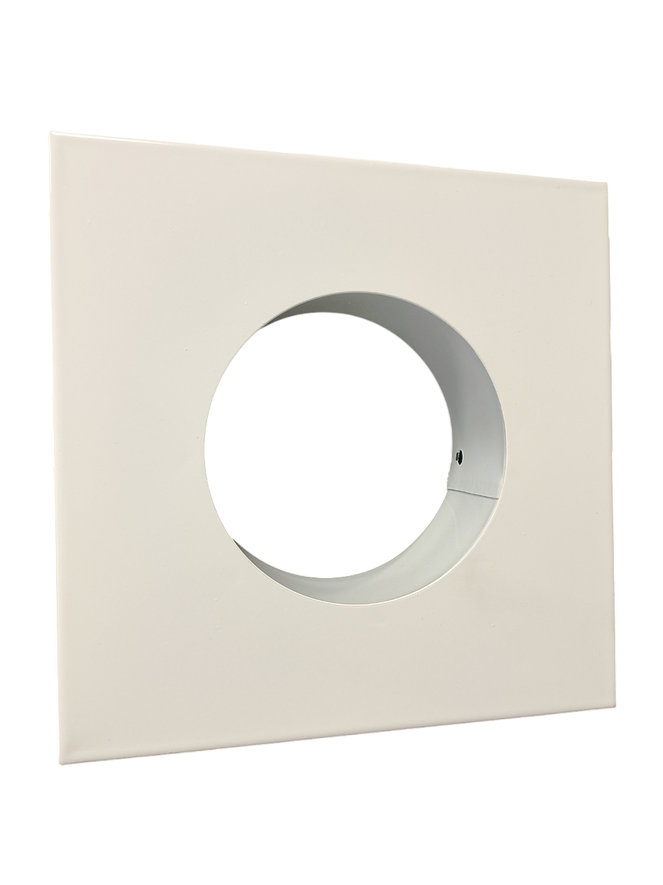 Материал жекоративного фланца - сталь. Фланец выкрашен в белый цвет порошковой эмалью.
