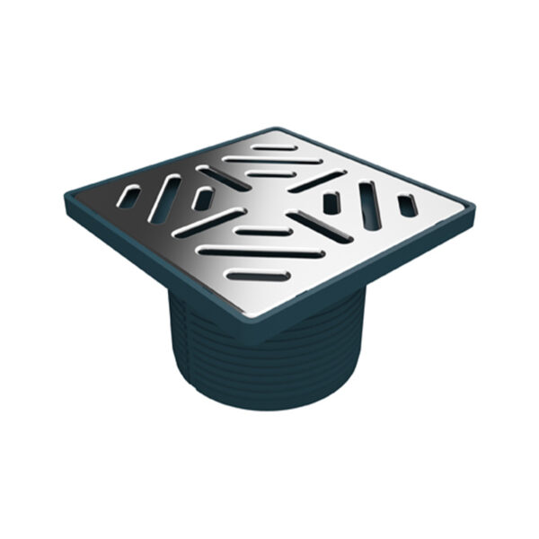 Решетка из нержавеющей стали 304 AISI Размер 1 мм 150×150 мм Корпус и рама из АБС-пластика Высота изделия 95 мм Регулируемая высота 100 мм Нижнее выпускное отверстие Ловушка для сбора грязи 100% гидроизоляция Защита от запаха