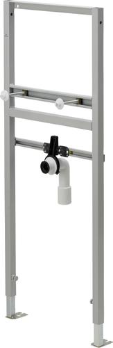 стальная рама с порошковым напылением, звукоизолирующая конструкция для крепления стеновых водорозеток Viega, отводящее колено DN40/50, резиновый ниппель DN40/30, крепежный материал для элемента (к полу) и керамики, саморезы для фиксации на металлических каркасных конструкциях, отверстие Ø 11 мм для крепления на деревянном каркасе