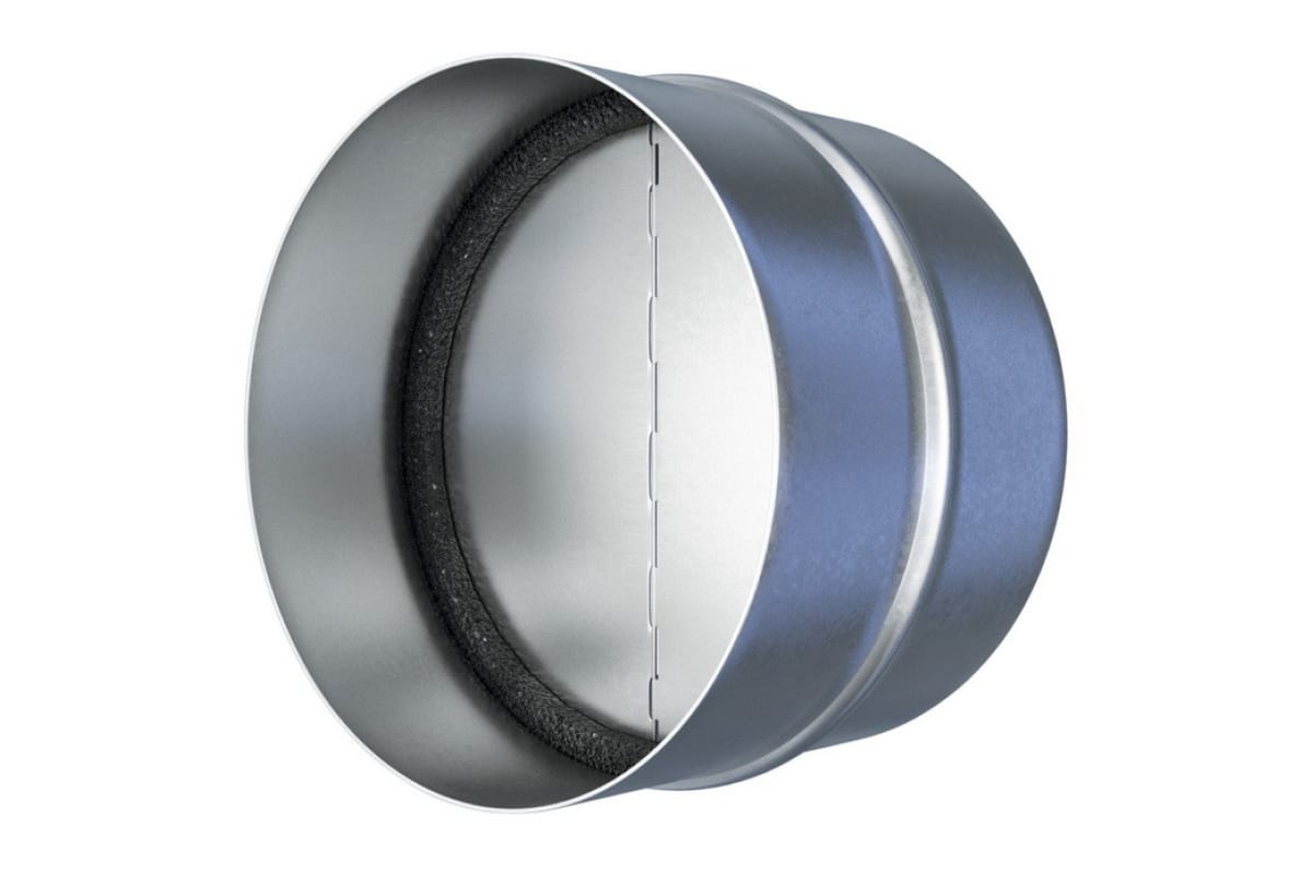 Пластины клапана открываются под давлением, которое создается потоком воздуха, и закрываются пот действием пружины. Корпус клапана изготовлен из оцинкованной стали, пластины — из листового алюминия.