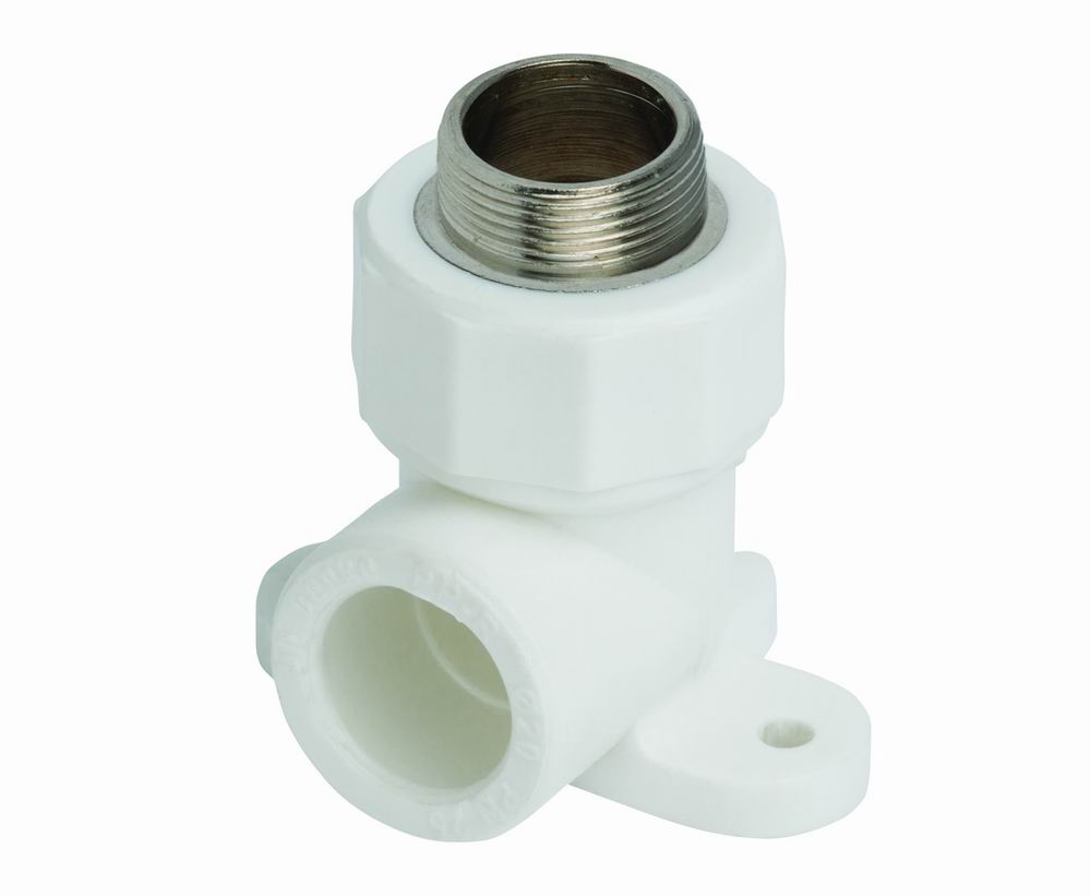Угольник имеет наружную резьбу, а также оснащен специальным креплением, с помощью которого его можно надежно зафиксировать на стене.