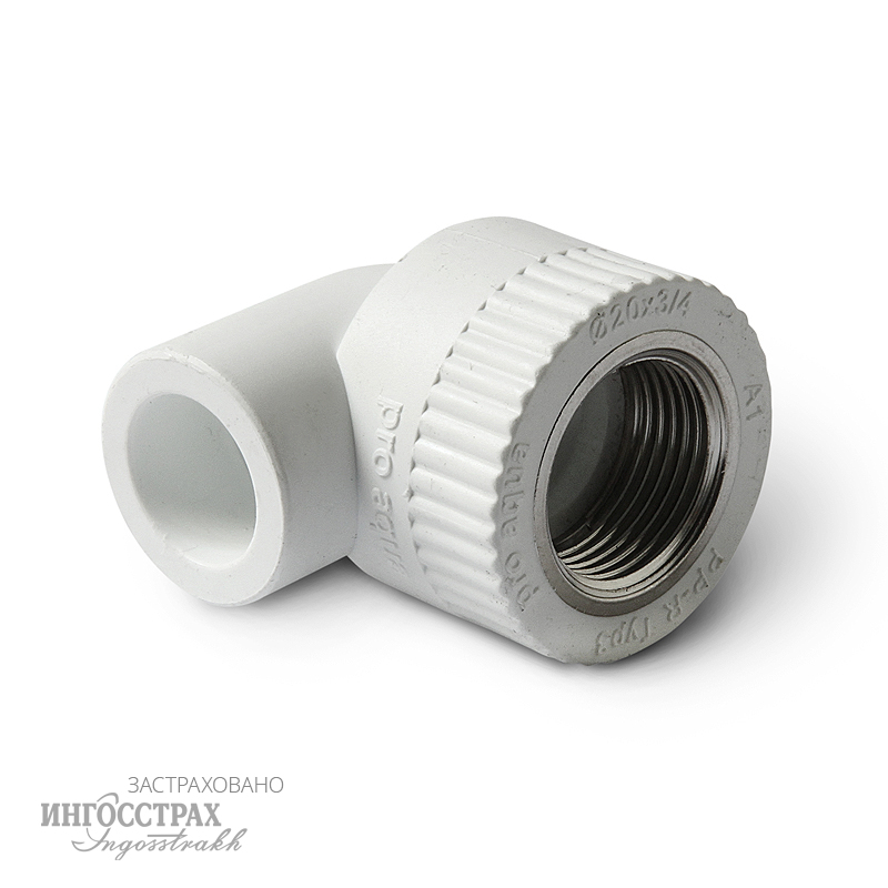 Фитинг оснащен внутренней резьбой и выполнен в виде колена 90°, что позволяет изменить направление трубопровода под прямым углом и подключить водозапорную арматуру.