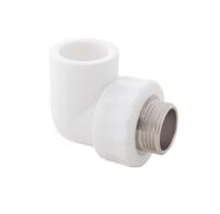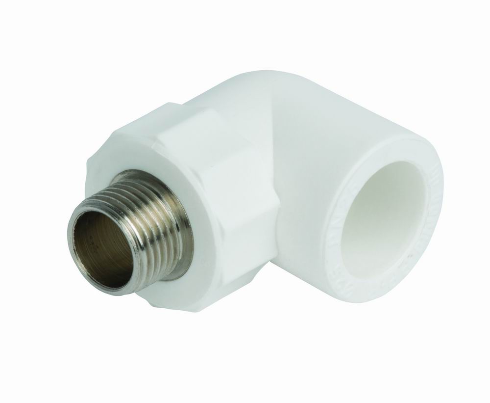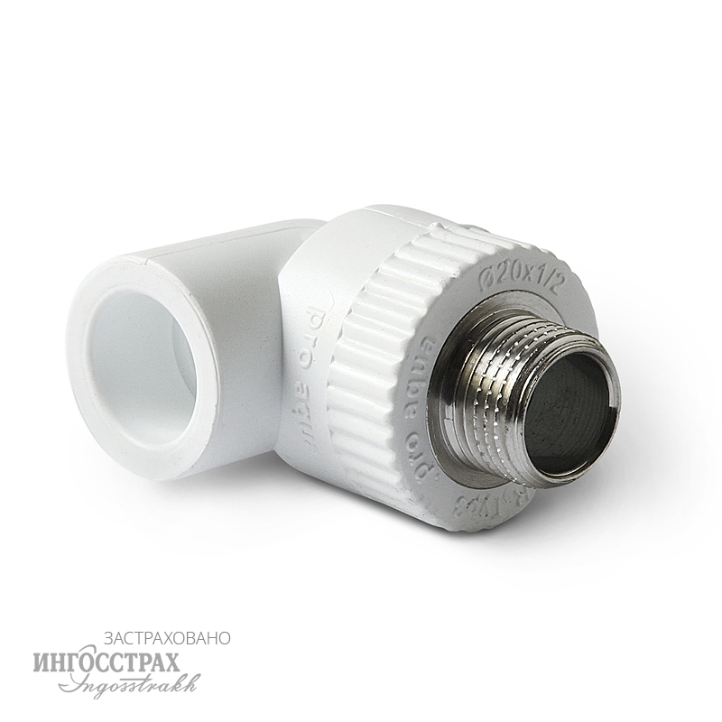 Фитинг оснащен наружной резьбой и выполнен в виде колена 90°, что позволяет изменить направление трубопровода под прямым углом и подключить водозапорную арматуру.