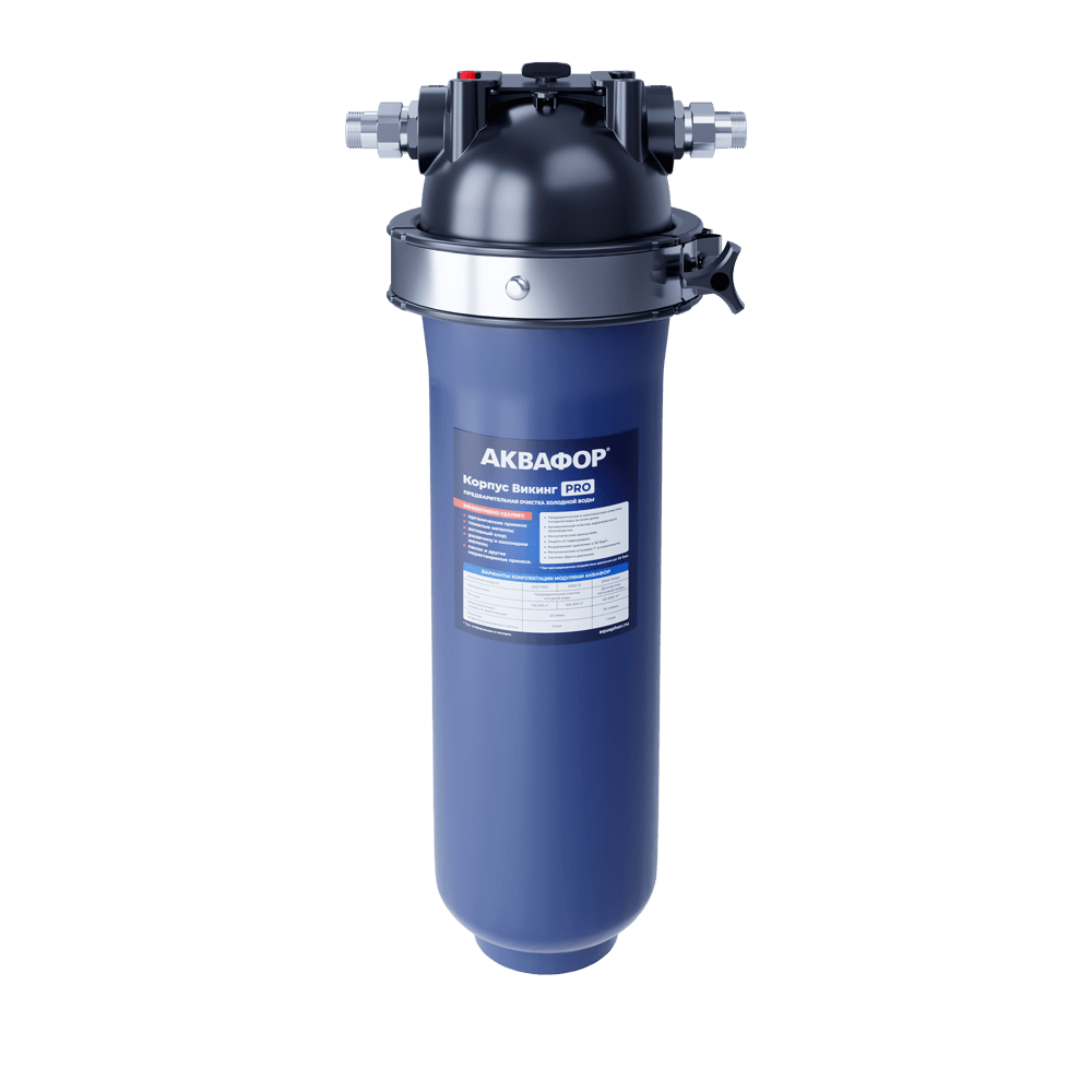 К корпусу Викинга Pro подходят как модули для базовой очистки от песка, ржавчины или других крупных частиц, так и сорбционные модули для глубокой фильтрации холодной воды от хлора и других химических примесей — картриджи АКВАФОР B520 Pro и B520-13.