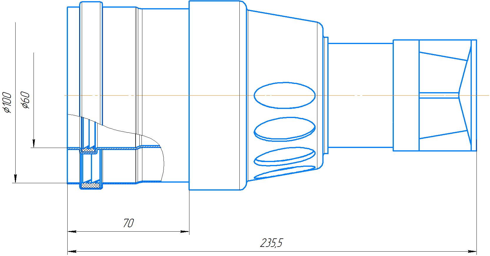 Длина элемента 235,5 мм.