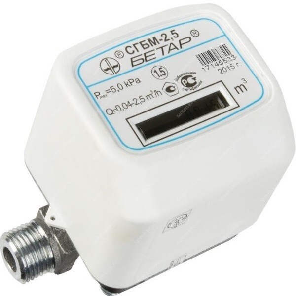±1,5% Диапазон измерений температуры газа от -30ºС до +50ºС Пределы допускаемой абсолютной погрешности при измерении температуры газа ±0,5ºС Вес импульса 0,002 м3/имп.; 0,010 м3/имп. Диапазон температуры газа от -30ºС до +50ºС Максимальное рабочее избыточное давление газа, Рmax 5 кПа Потеря давления газа при Qmax 0,9 кПа Емкость индикаторного устройства 99999,999 м3 Цена единицы младшего разряда индикаторного устройства 0,001 м3 Напряжение электропитания от литиевой батареи 3,6 В Срок службы литиевой батареи Не менее 12 лет Габаритные размеры (не более): 110 мм - длина 110 ММ - ширина 81 мм - высота 97 мм Присоединительная резьба по ГОСТ 6357-81 1/2 дюйма Масса счетчика Не более 0,6 кг Степень защиты по ГОСТ 14254-96 IP 50