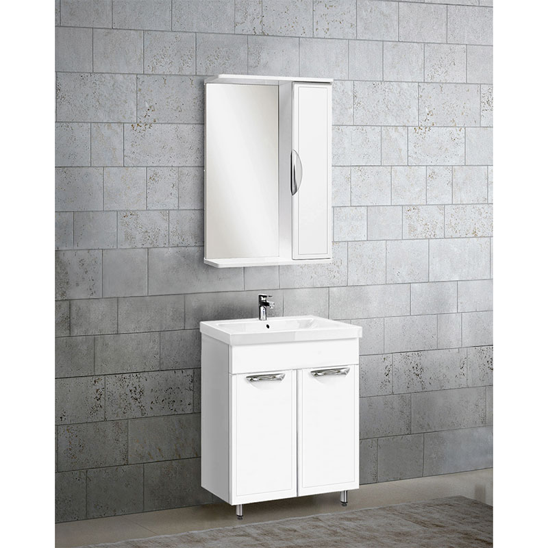 это современное и эргономичное решение для вашей ванной комнаты, отражение ее стиля. Конструкция шкафа включает в себя корпус с дверью и полками. Поставляется в собранном виде в комплекте с крепление к стене и ручкой для дверцы.