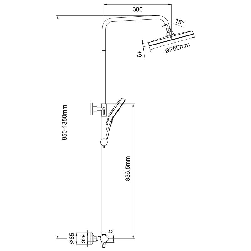 Размер верхнего душа: диаметр 26 см