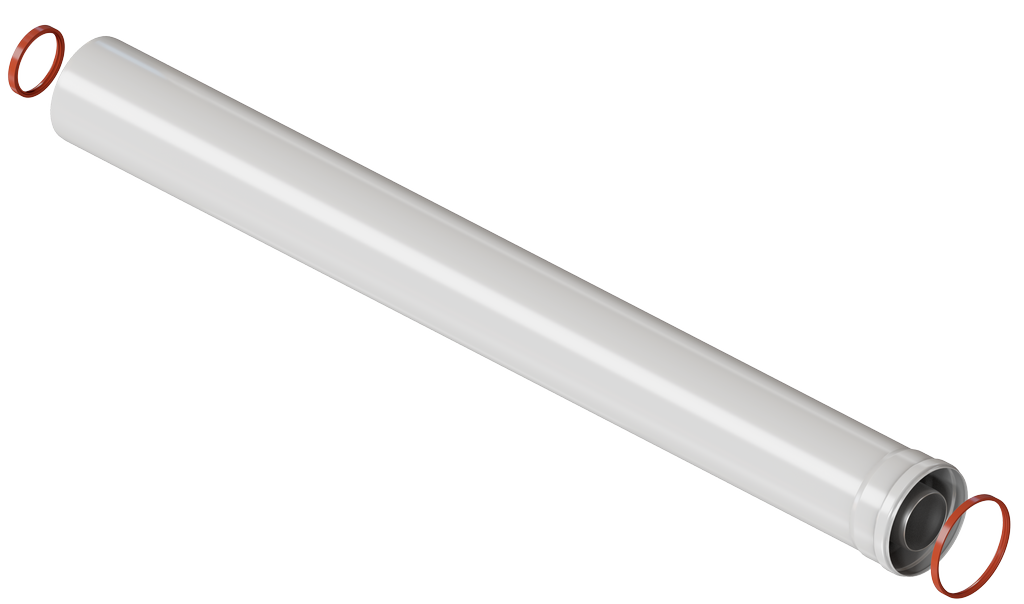 Конструкция трубы д.60/100 мм обеспечивает совместимость с коаксиальной системой дымоудаления д.60/100 мм газовых котлов с закрытой камерой сгорания.