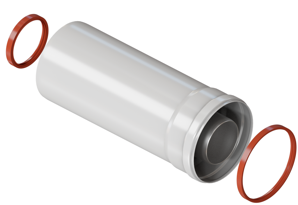 Конструкция трубы д.60/100 мм обеспечивает совместимость с коаксиальной системой дымоудаления д.60/100 мм газовых котлов с закрытой камерой сгорания.