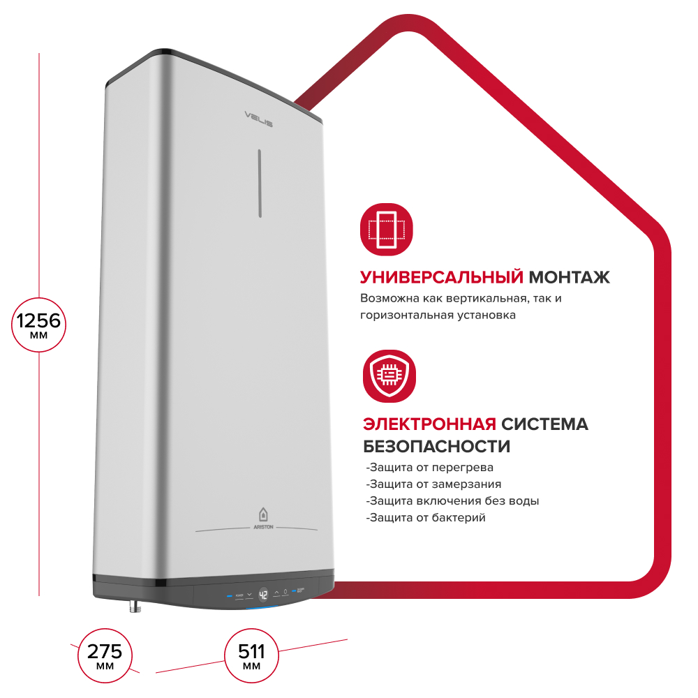 Защита от замерзания - температура воды в водонагревателе не опускается ниже 5⁰С при условии подключения к элетросети.