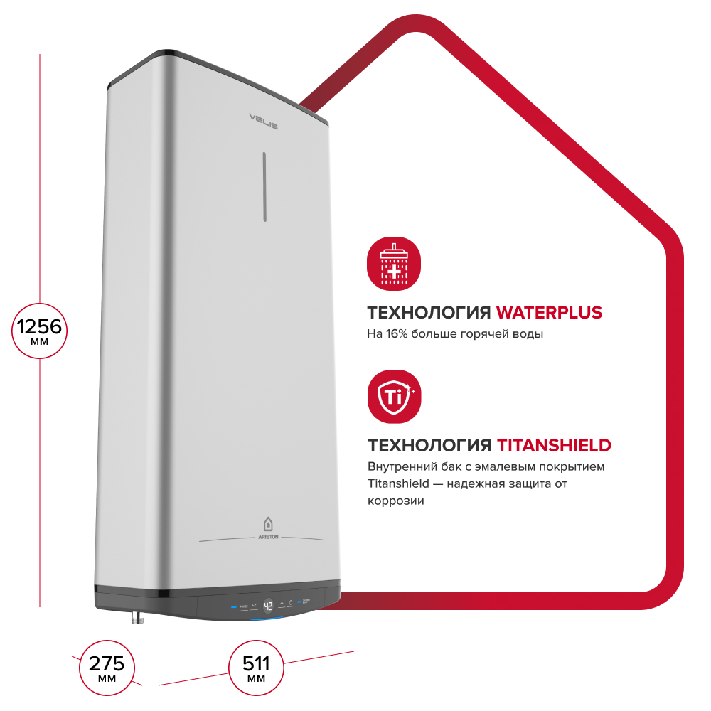 Технология WATERPLUS - на 16% больше горячей воды зато же время.
